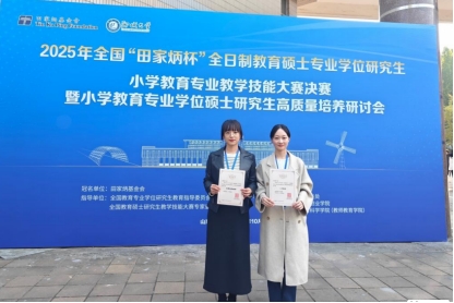 近日,2025年全国“田家炳杯”全日制教育硕士专业学位研究生小学教育专业教学技能大赛落下帷幕。我校小学教育专业首次参与本项比赛。经前期周密部署及比赛环节的激烈比拼,教育学部2024级研究生王世婧荣获比赛二等奖。侯丽娜老师获大赛颁发的“优秀指导教师”奖。